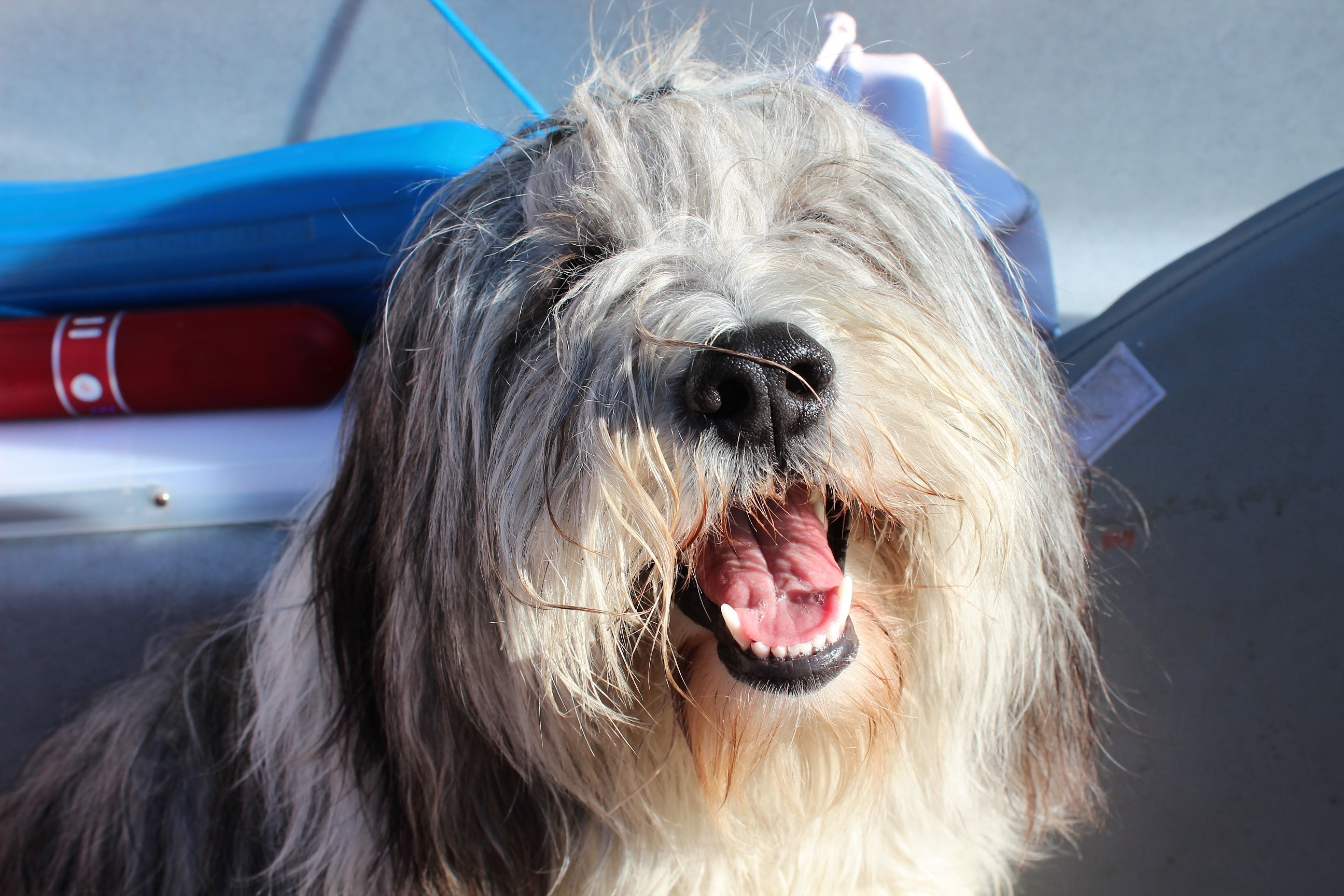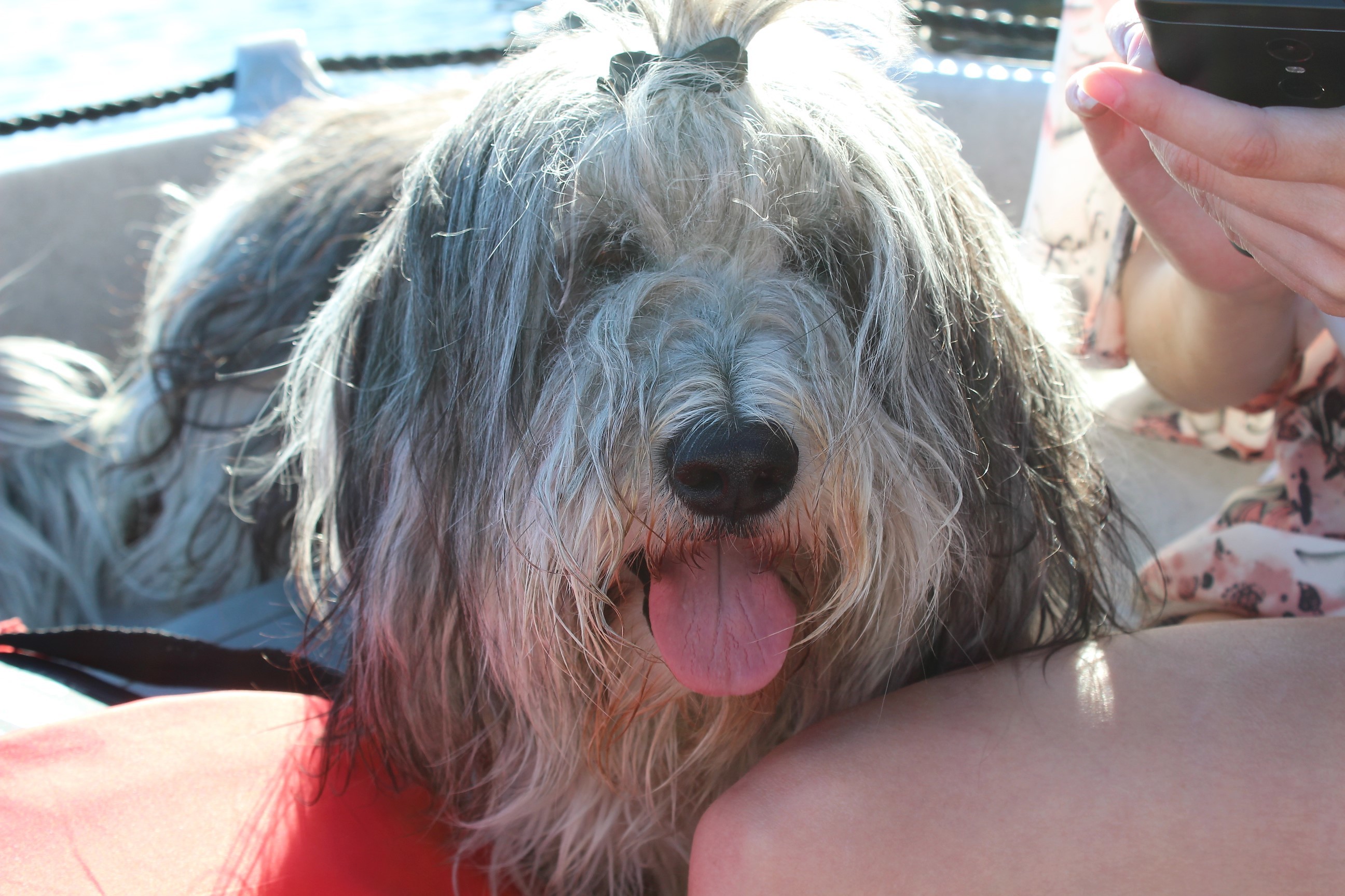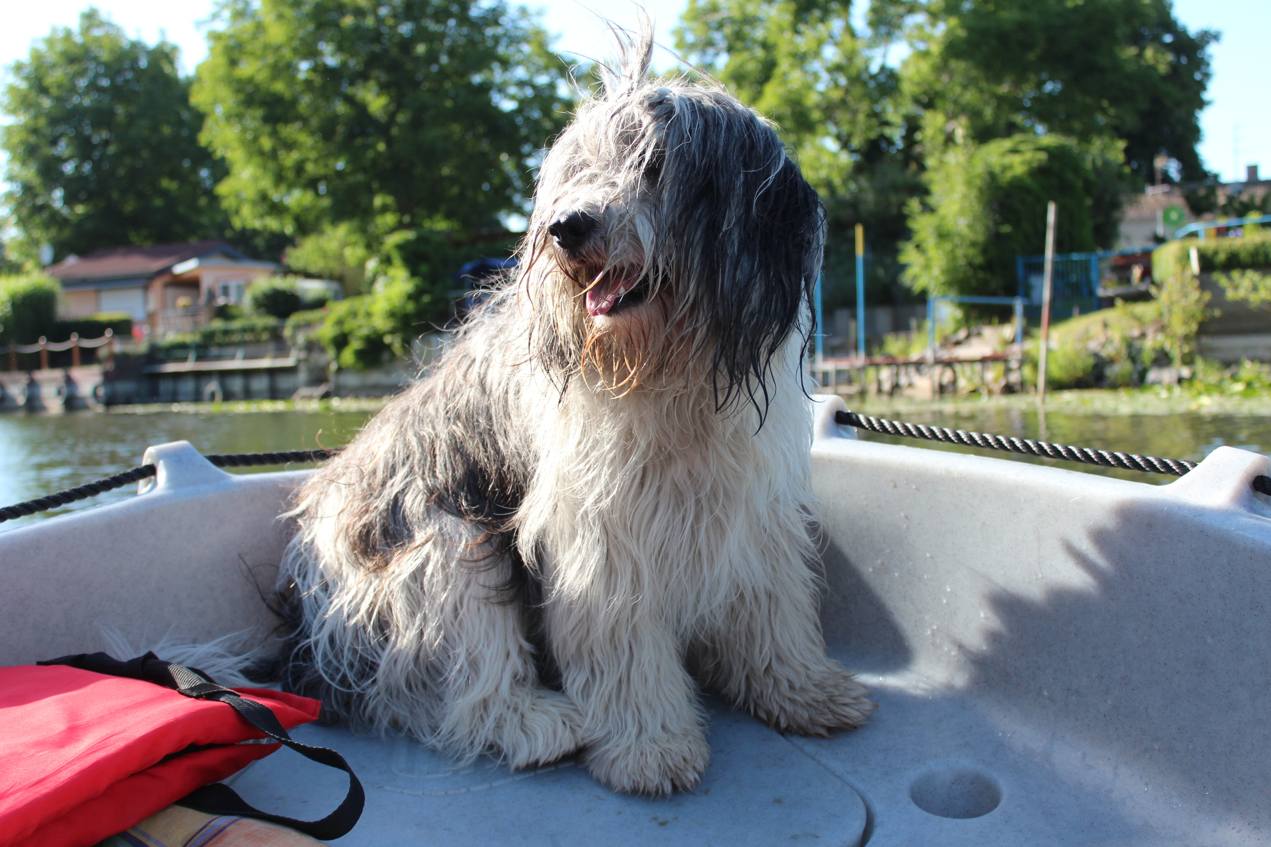 Mia als blinder Passagier! Das erste mal Boot fahren.