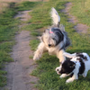 An der Leine gehen wir durch das Wohngebiet, in den Heimtiermarkt um die Ecke und mit Mama spazieren.
